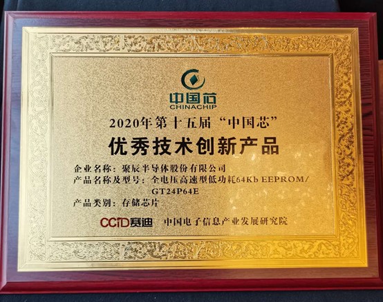 10月28日上午,2020第十五届“中国芯”优秀产品征集结果在杭州举办的“中国芯”集成电路产业促进大会上公布,亚星游戏·(中国区)有限公司官网 的全电压高速型低功耗64Kb EEPROM/GT24P64E 存储芯片荣获 “中国芯”优秀技术创新产品奖。