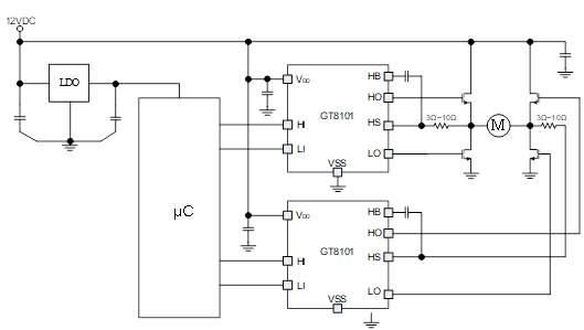 2、内置自举二极管,外围线路简洁,节省PCB面积和BOM成本